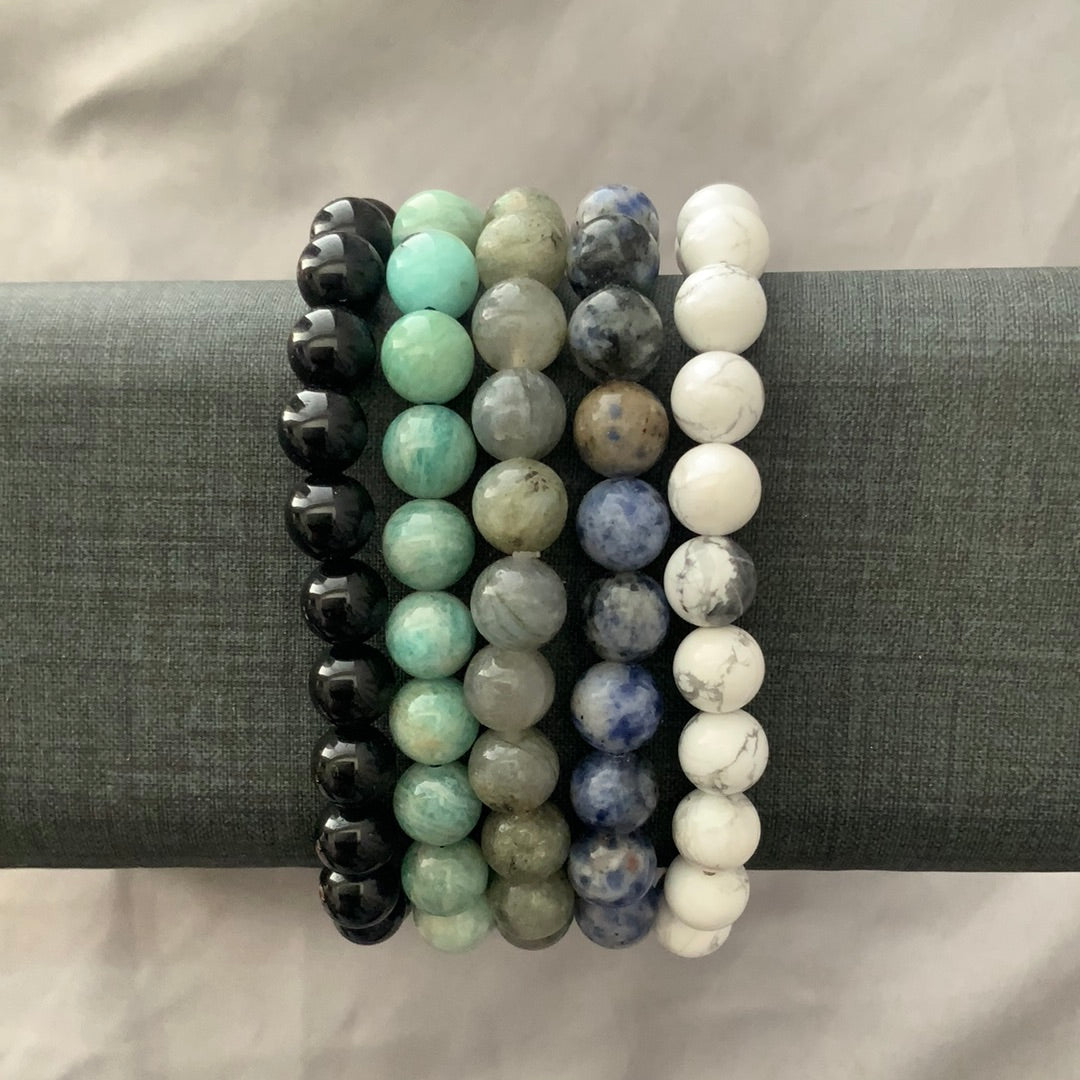 Black Obsidian : Howlite : Labradorite : Amazonite : Sodalite