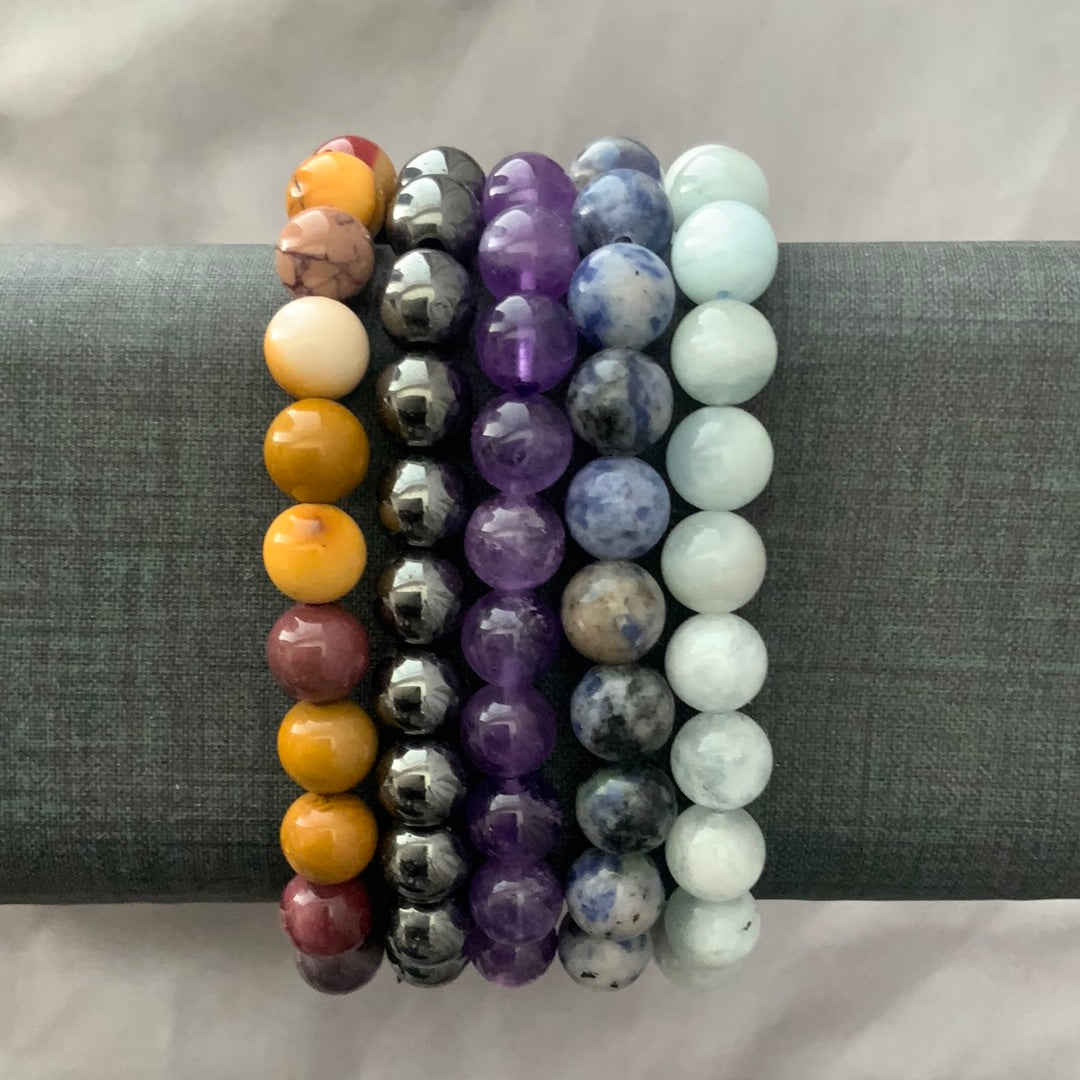 Aquamarine : Sodalite : Amethyst : Mookaite : Hematite