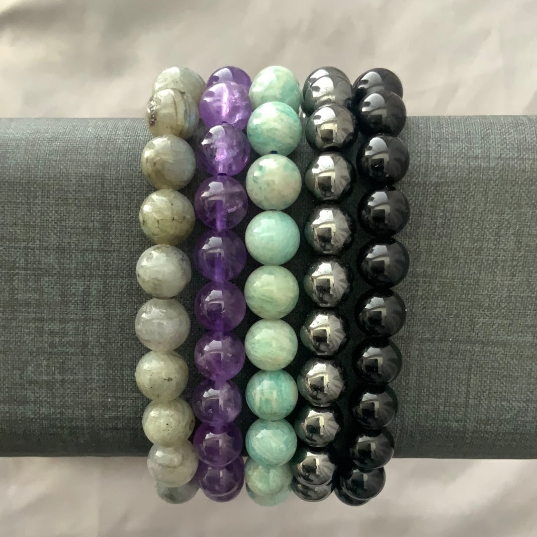 Amazonite : Labradorite : Amethyst : Blue Aventurine : Black Obsidian