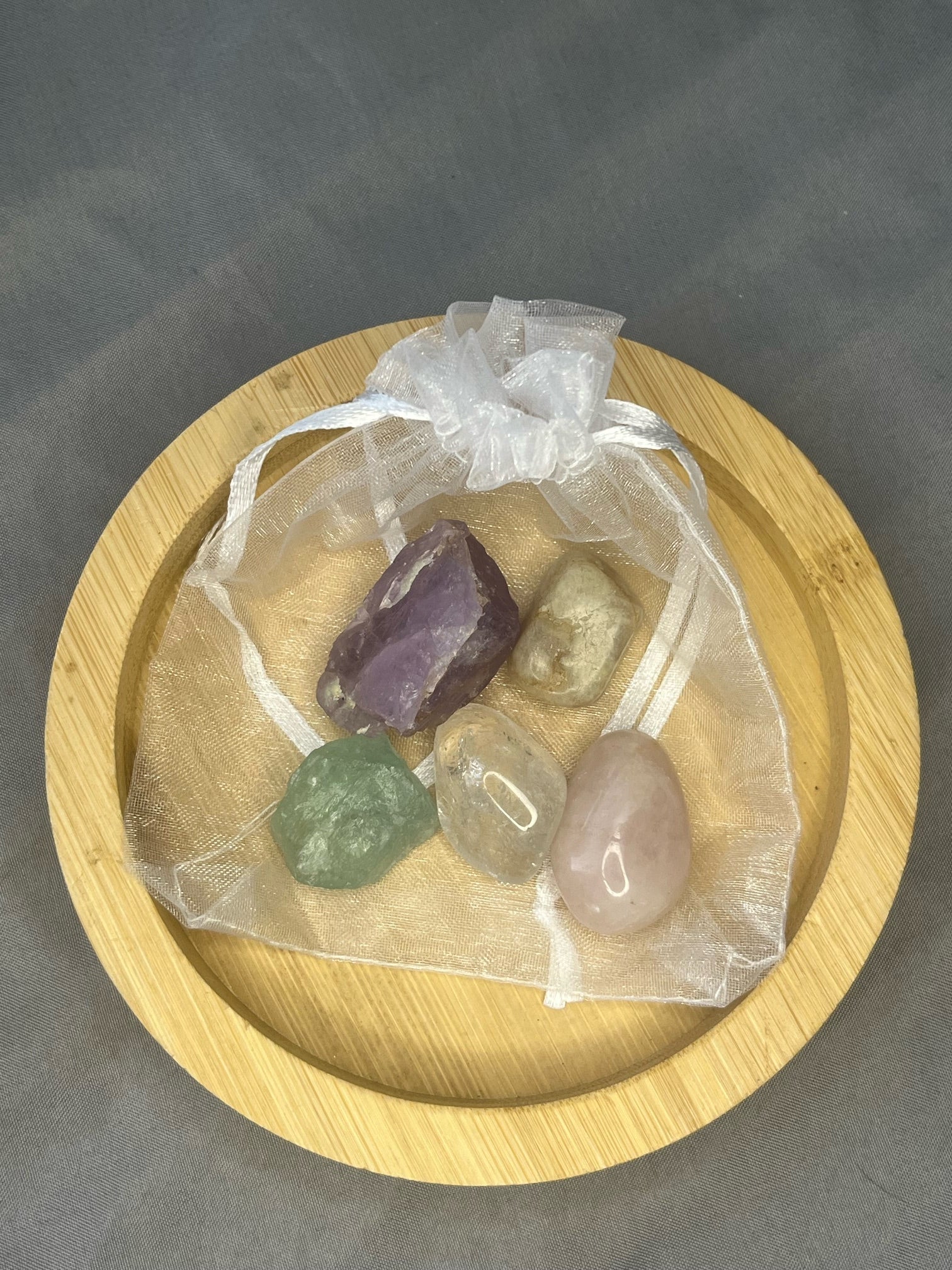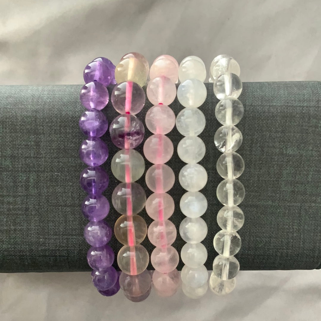 Fluorite : Clear Quartz : Rose Quartz : Moonstone : Amethyst