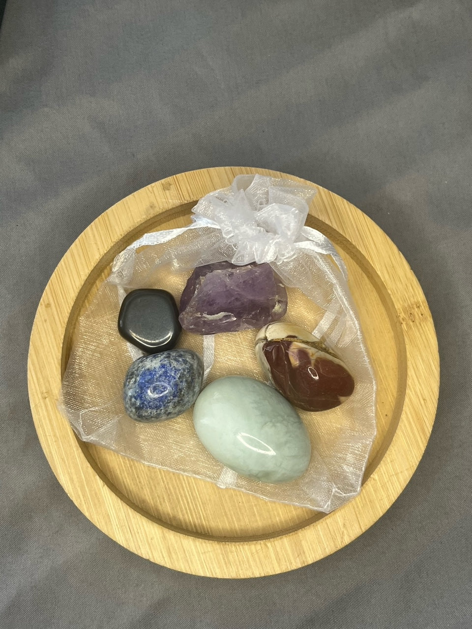 *Please note that these are natural stones : expect variance in colors, patterns and sizes. These are stock photos of the original sets, you likely will not be receiving the exact item pictured unless specifically stated. I cannot accommodate request for sizing or patterns. All tumble/rough sets and pendant combinations are chosen intuitively.
