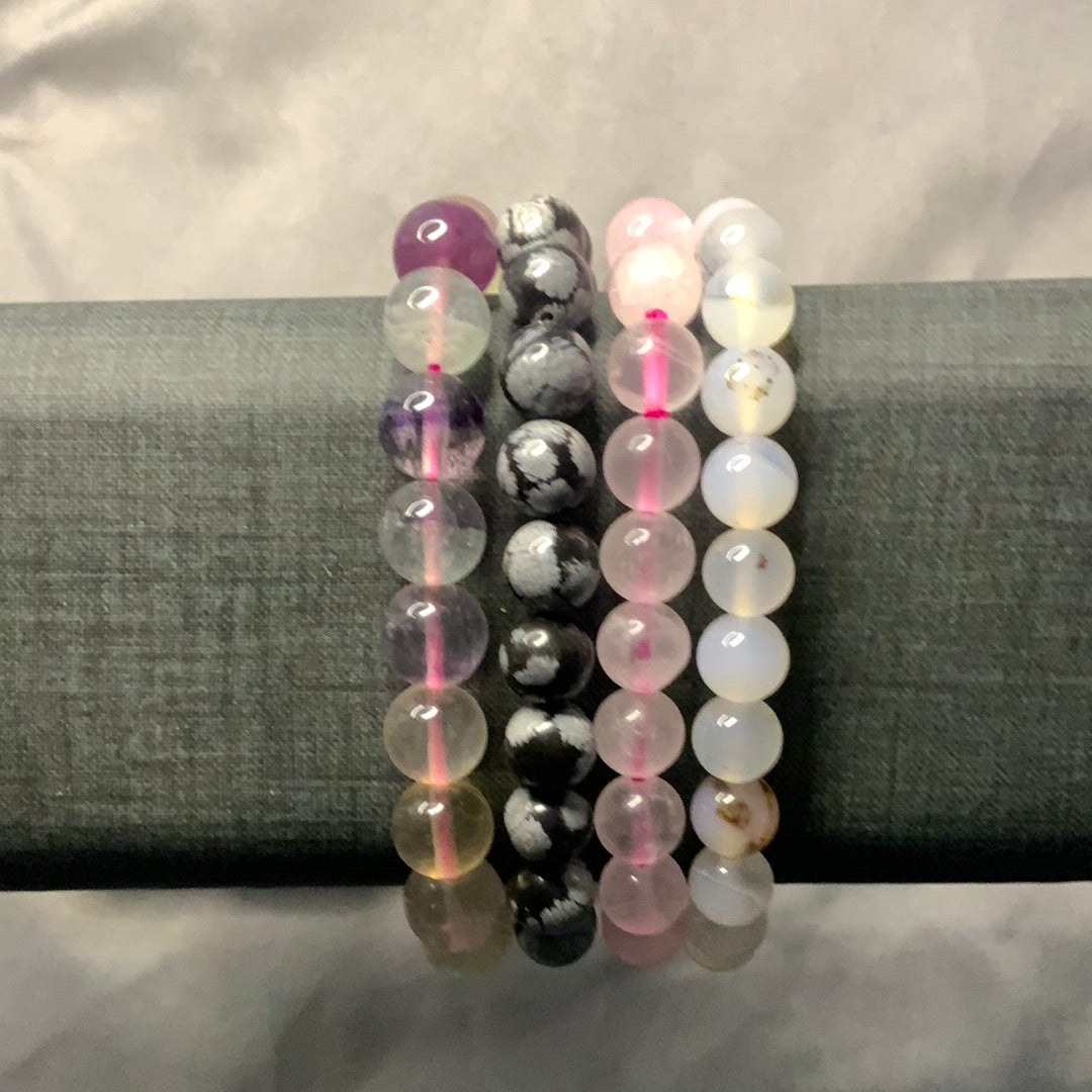 Fluorite : Rose Quartz : White Agate : Snowflake Obsidian