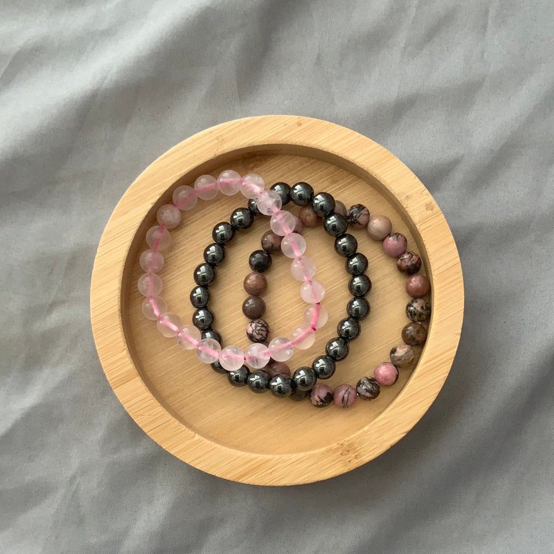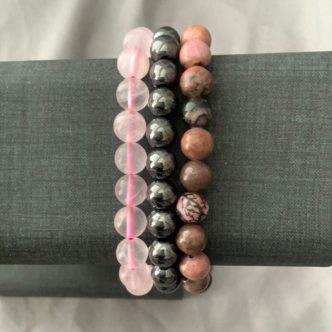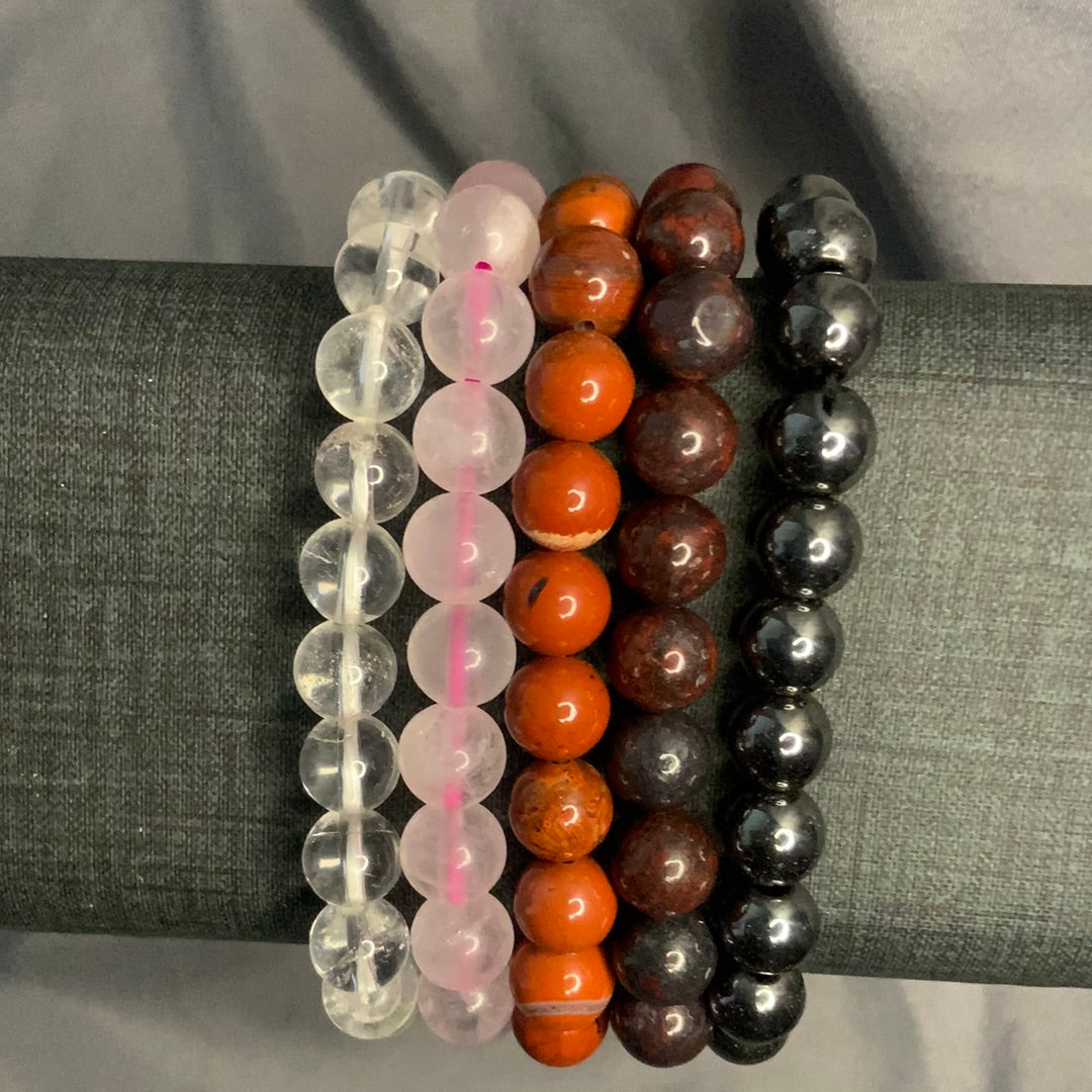 Clear Quartz : Rose Quartz : Red Jasper : Bloodstone : Hematite