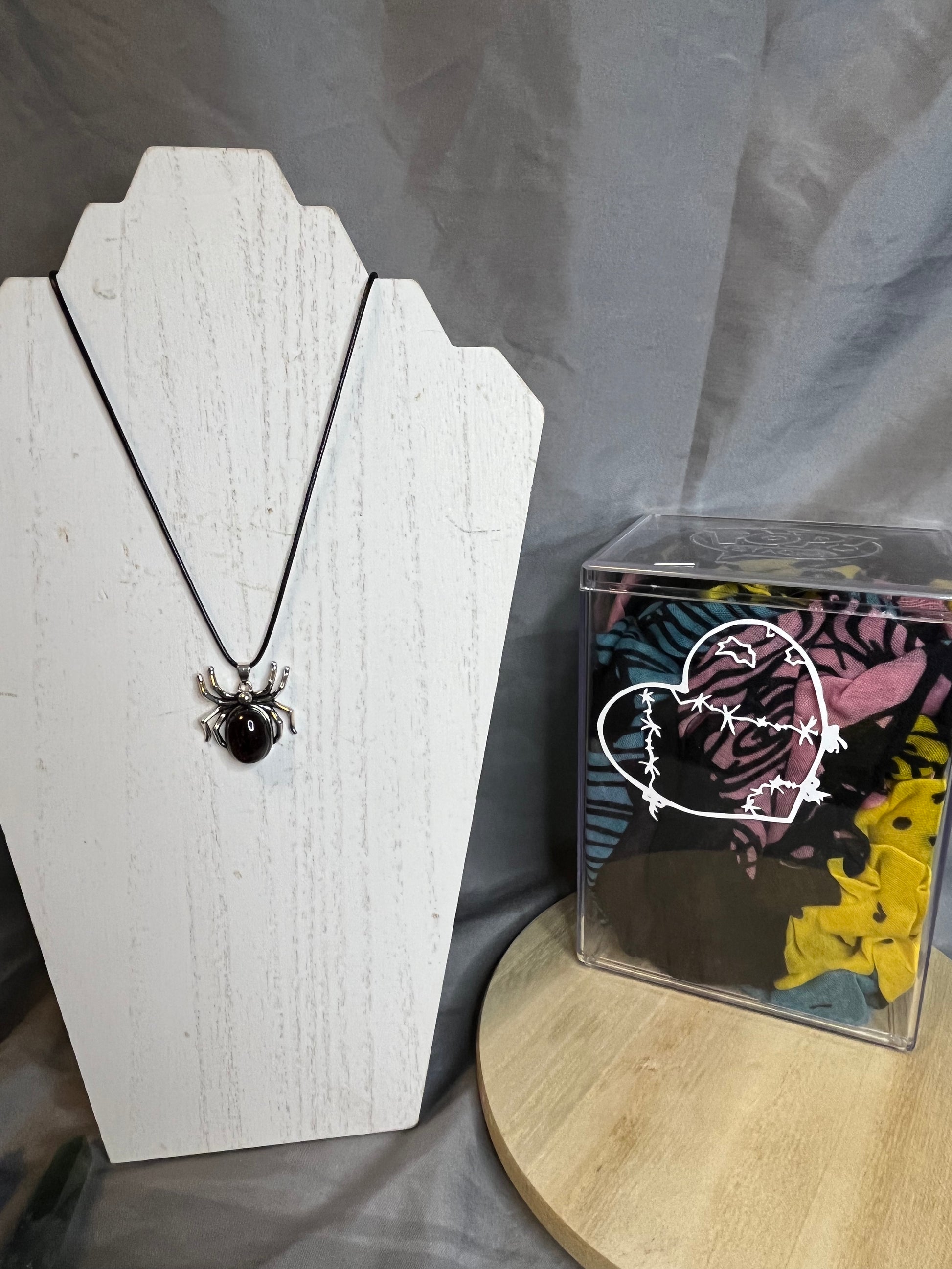 Each order receives one (1) Garnet Spider Pendant necklace.