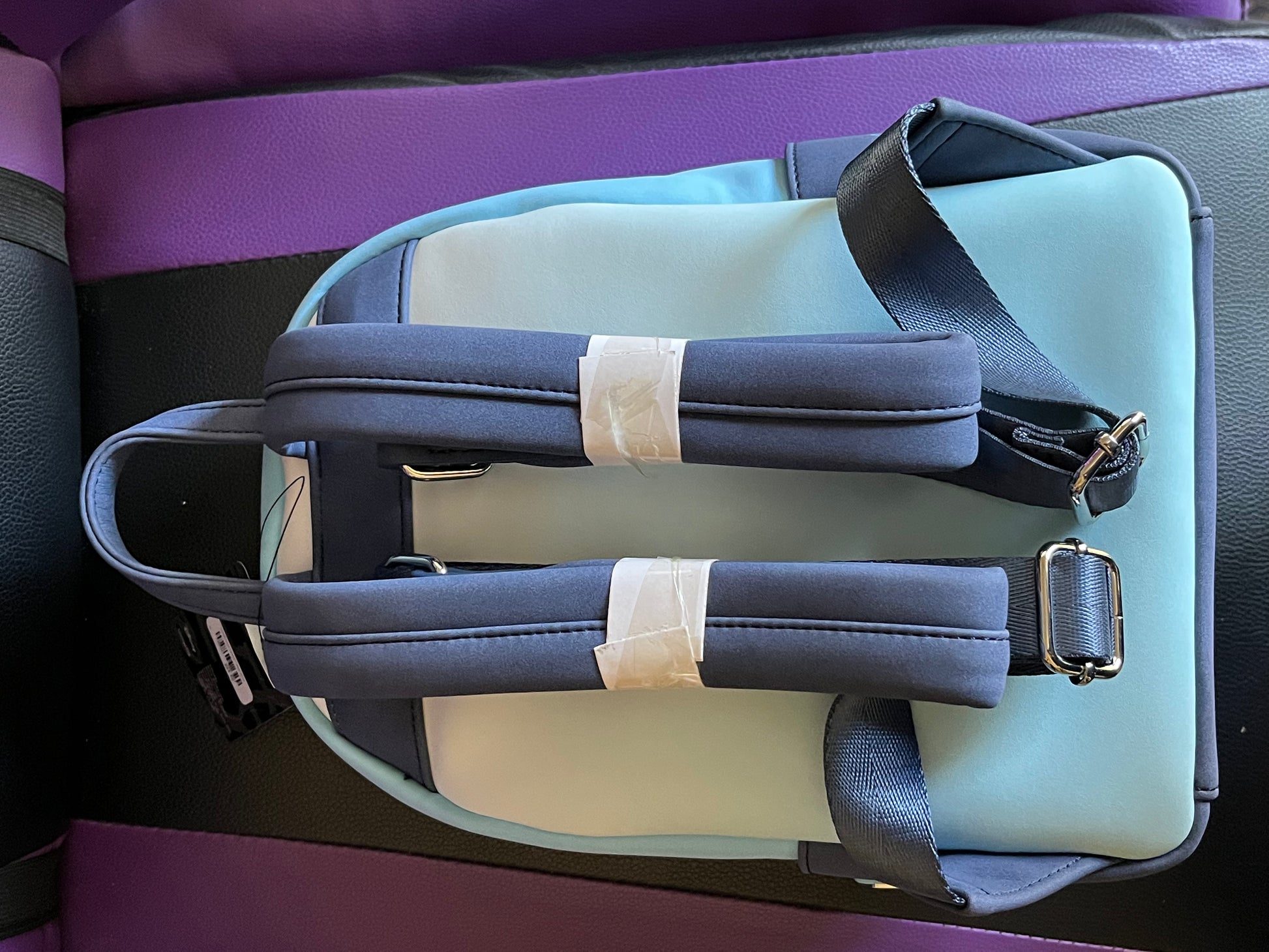 Soft, smooth textured feel. Features a top carry handle, adjustable straps, side pockets, main zip compartment and a front zip pocket.