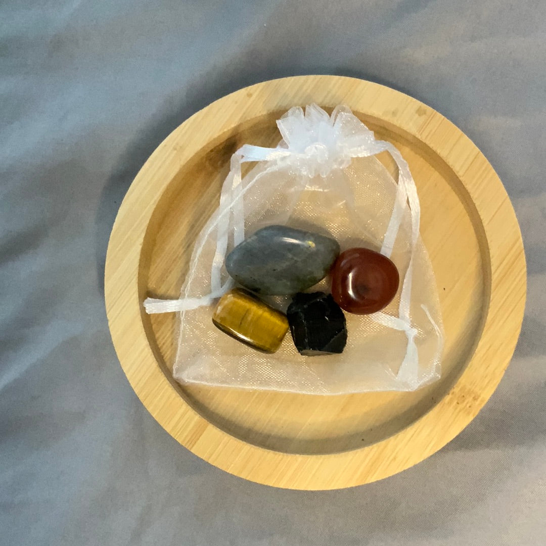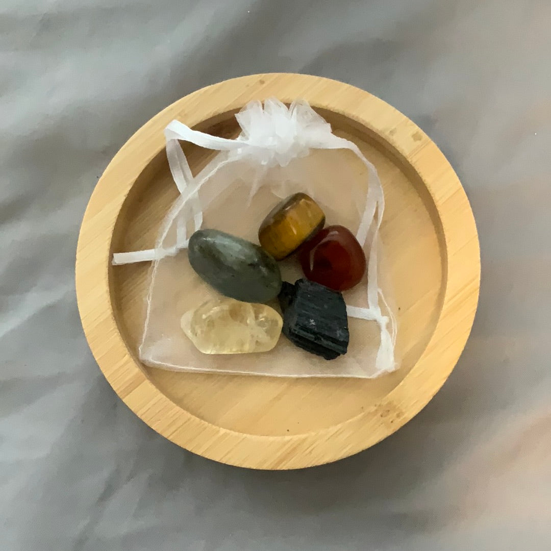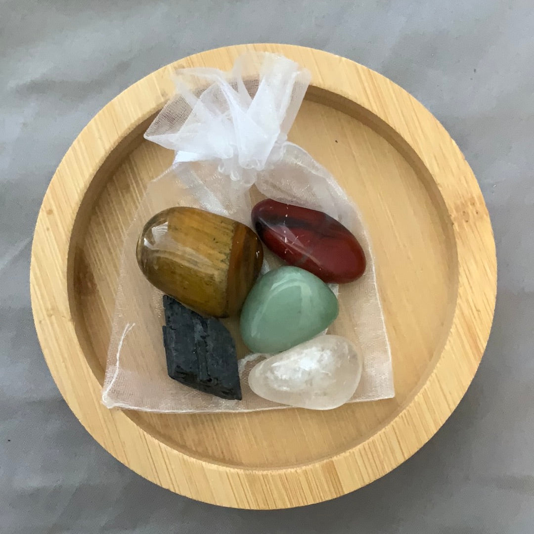 Clear Quartz : Black Tourmaline : Green Aventurine : Red Jasper : Tigers Eye