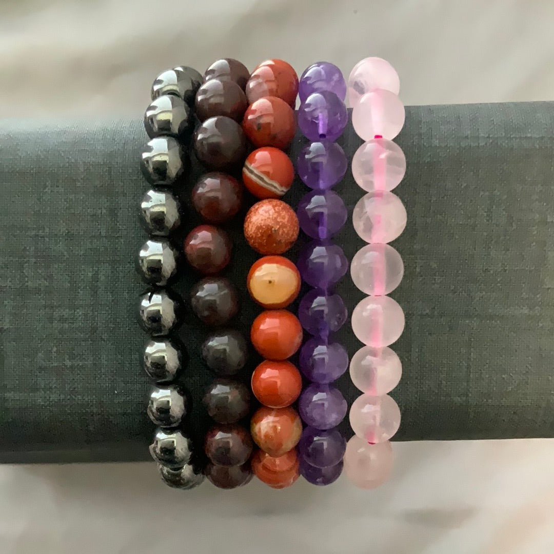 Rose Quartz : Amethyst : Red Jasper : Bloodstone : Hematite