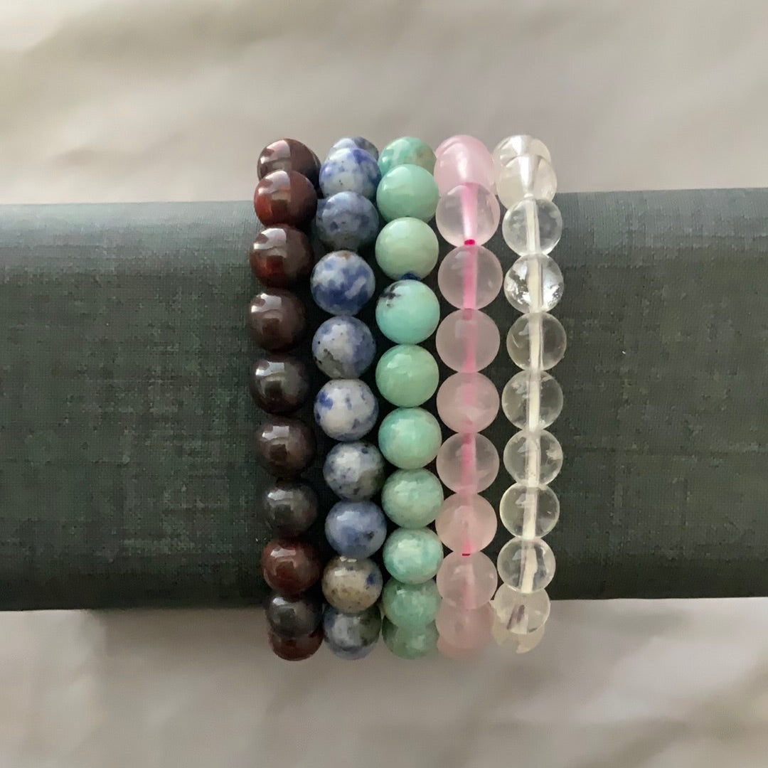 Clear Quartz : Rose Quartz : Amazonite : Sodalite : Bloodstone