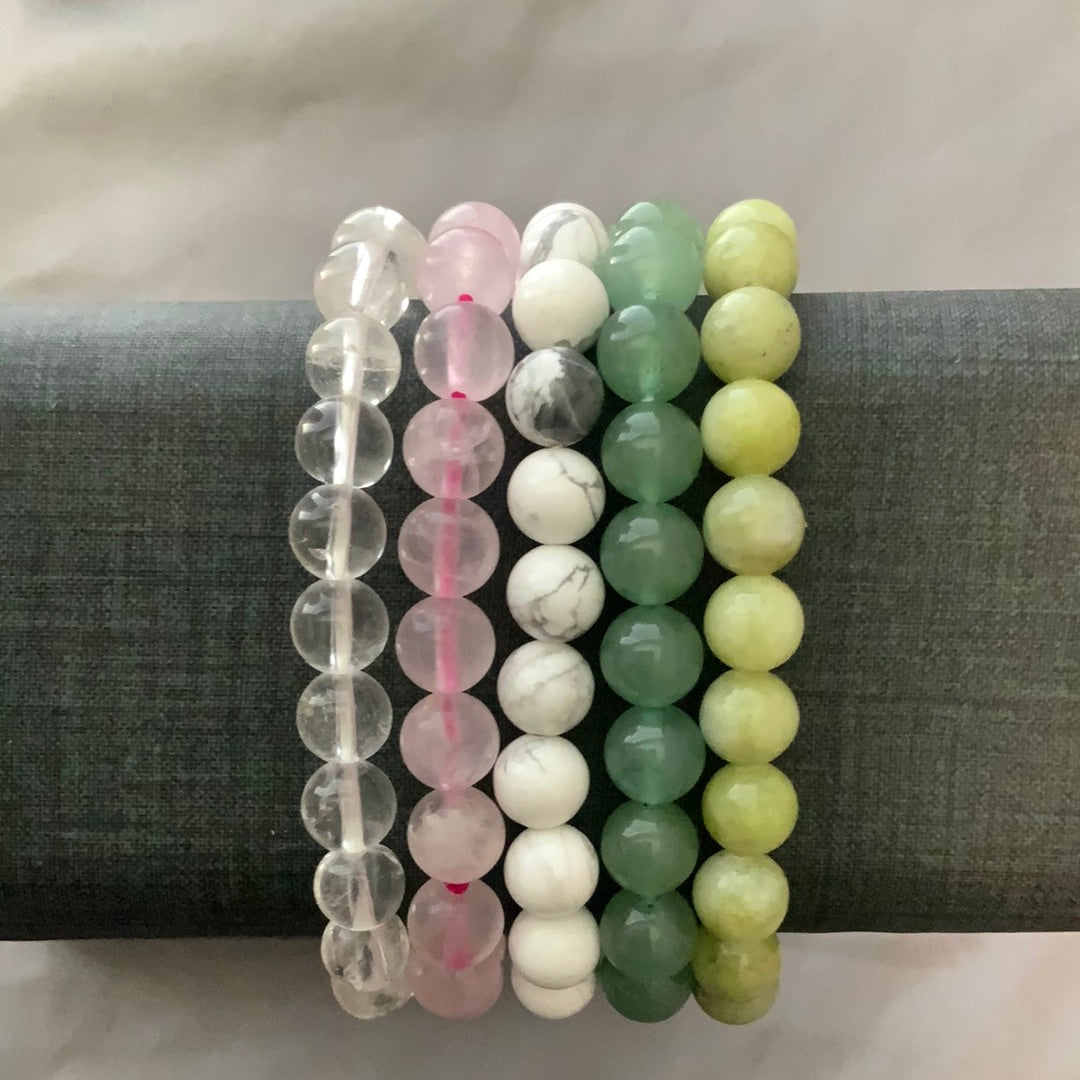 Clear Quartz : Rose Quartz : Green Aventurine : Jade : Howlite