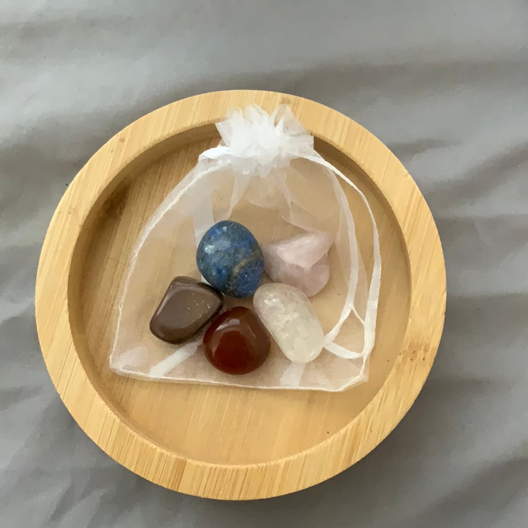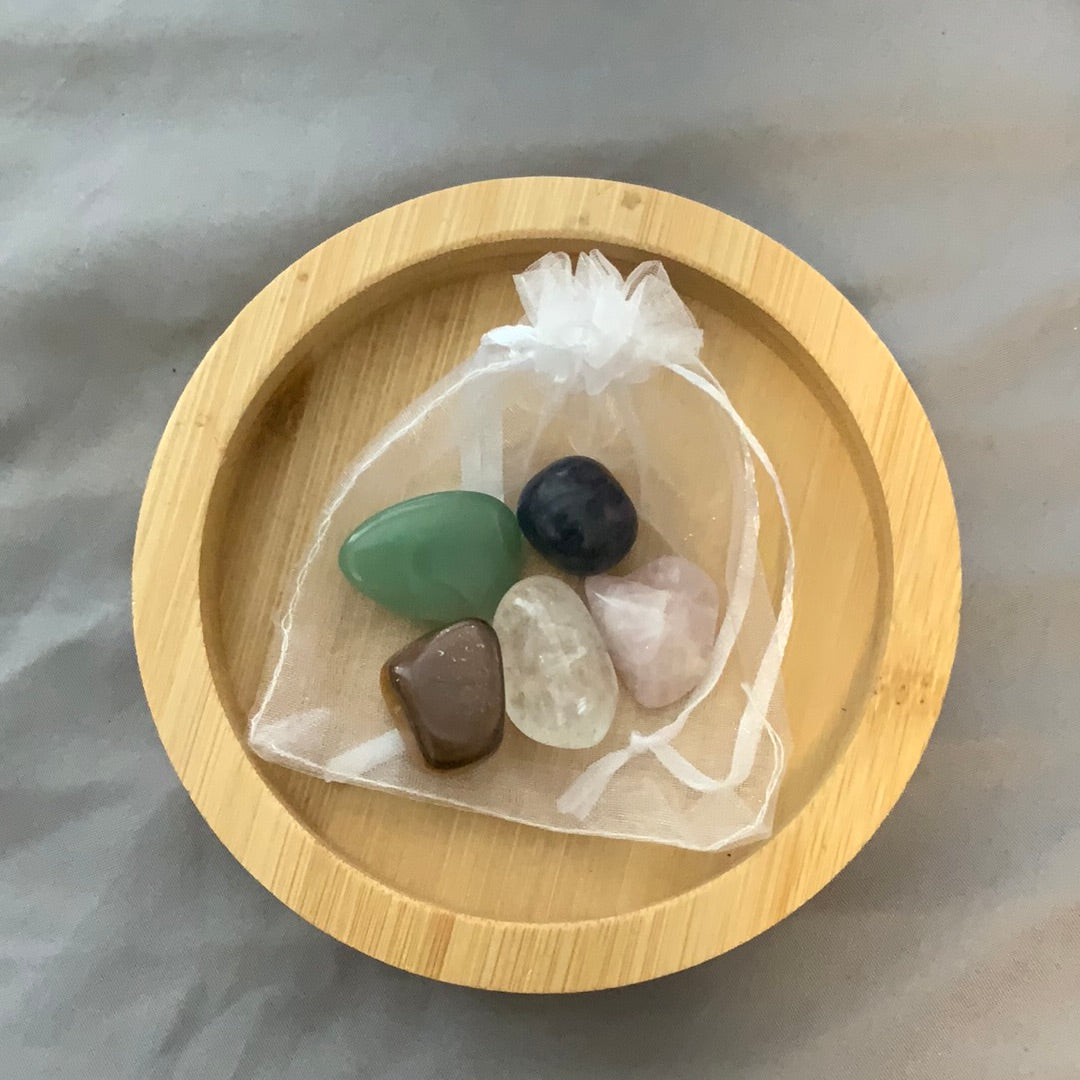 *Please note that these are natural stones : expect variance in colors, patterns and sizes. These are stock photos of the original sets, you likely will not be receiving the exact item pictured unless specifically stated. I cannot accommodate request for sizing or patterns. All tumble/rough sets and pendant combinations are chosen intuitively.